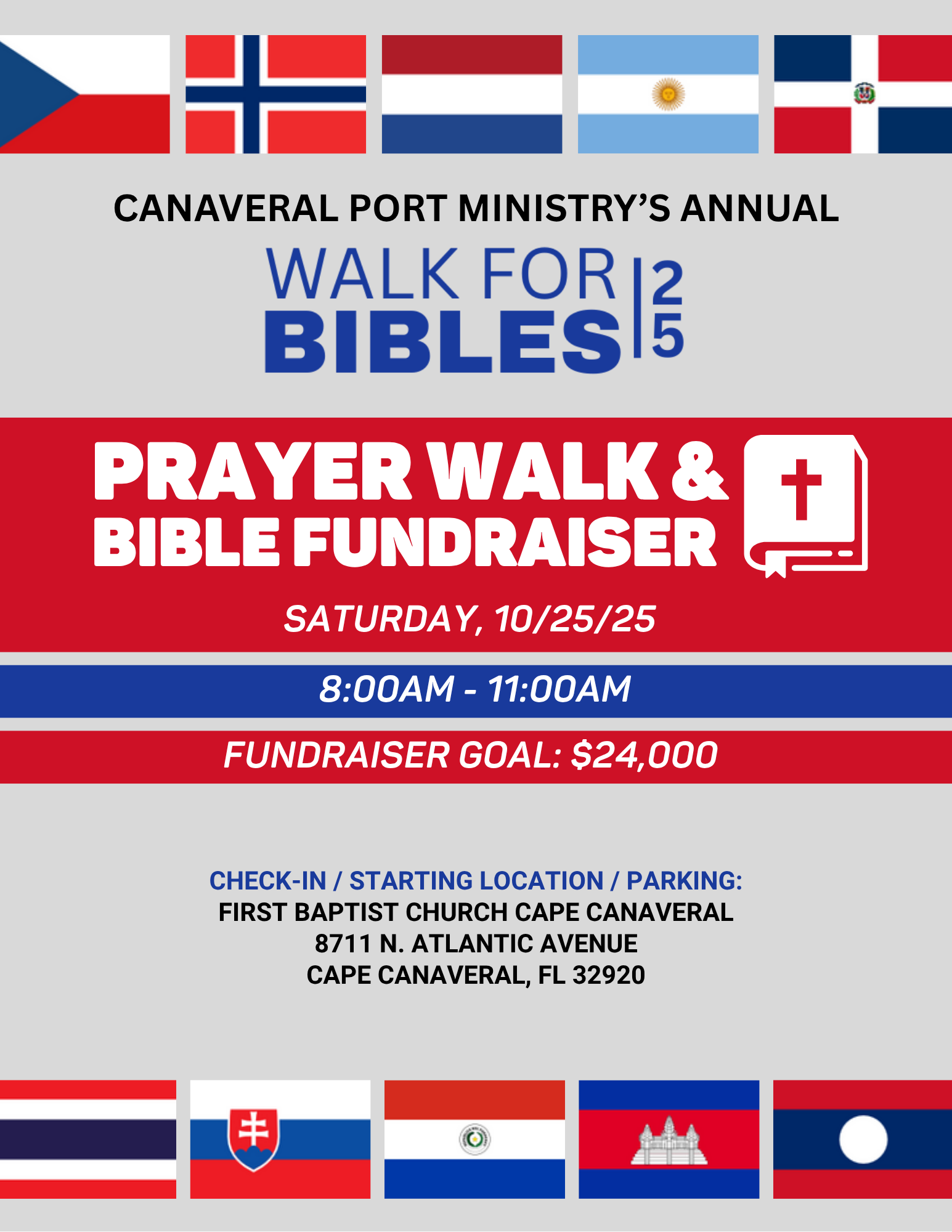 NOTE: Checks can be made out to: Canaveral Port Ministry / In the memo line put: Walk for Bibles